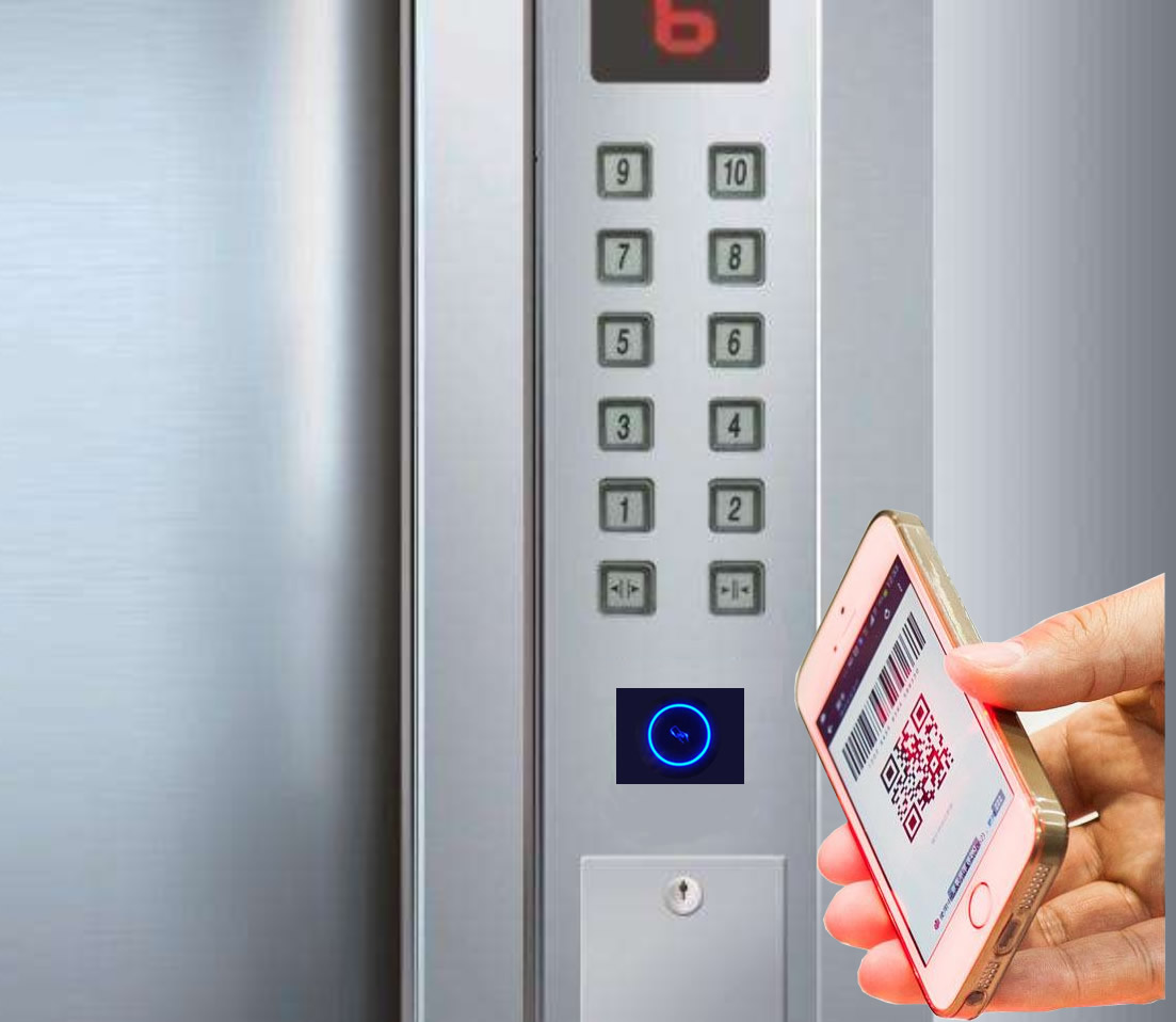 (3)訪客進入電梯后,無需按鍵,將二維碼對準電梯二維碼讀頭,倍加信梯控系統后自動點亮樓層按鈕乘梯;