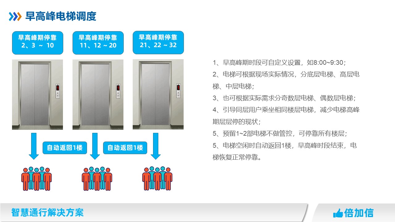 4、引導同層用戶乘坐相同樓層電梯,減少電梯高峰期層層停的現狀;