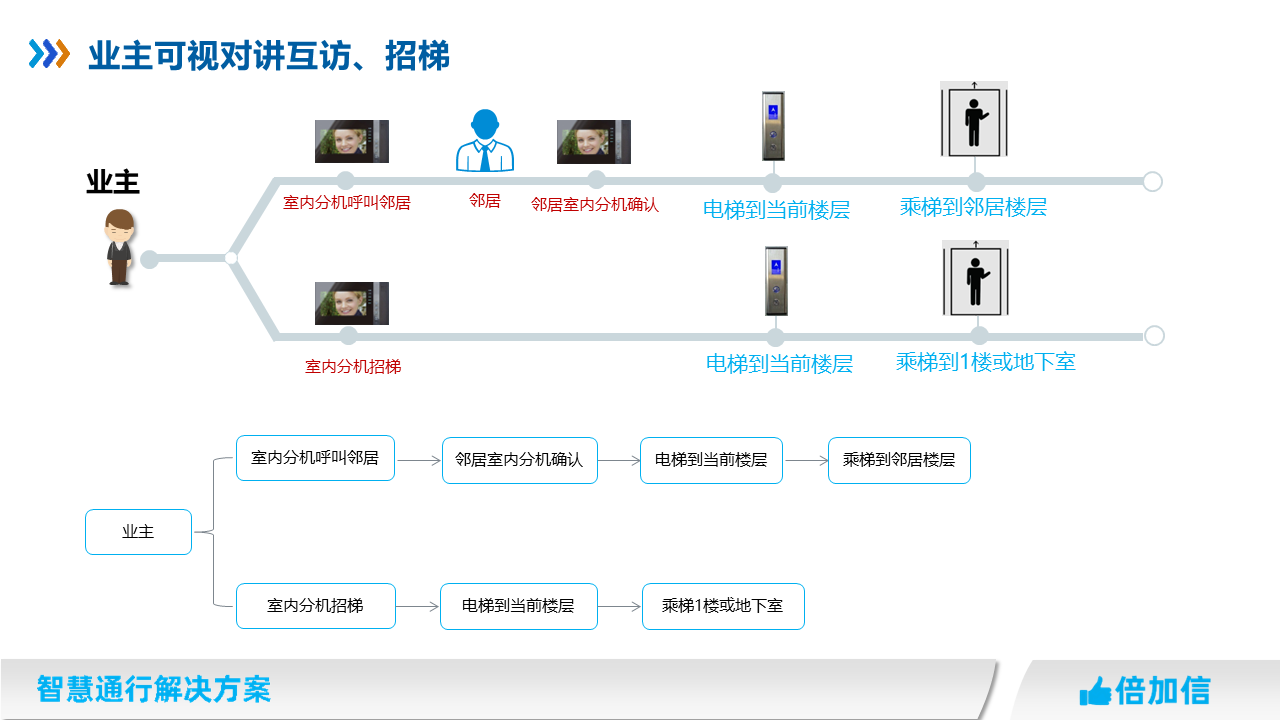 5、住宅項目訪客可在可視對講呼叫業(yè)主,實現(xiàn)呼梯聯(lián)動招梯和乘梯;