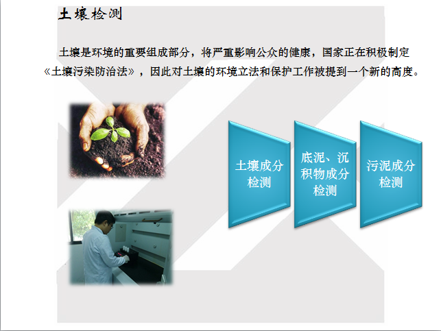 依據GB15618-1995《土壤環境質量標準》、《工業企業土壤環境質量風險評價基準》、GB 4284-1984《農用污泥中污染物控制標準》、提供工廠企業、河流等環境中土壤、污泥、底泥的檢測與咨詢服務。依據GB15618-1995《土壤環境質量標準》、《工業企業土壤環境質量風險評價基準》、GB 4284-1984《農用污泥中污染物控制標準》、提供工廠企業、河流等環境中土壤、污泥、底泥的檢測與咨詢服務。