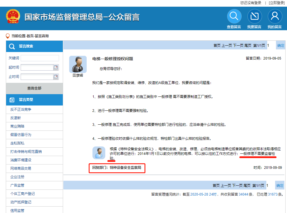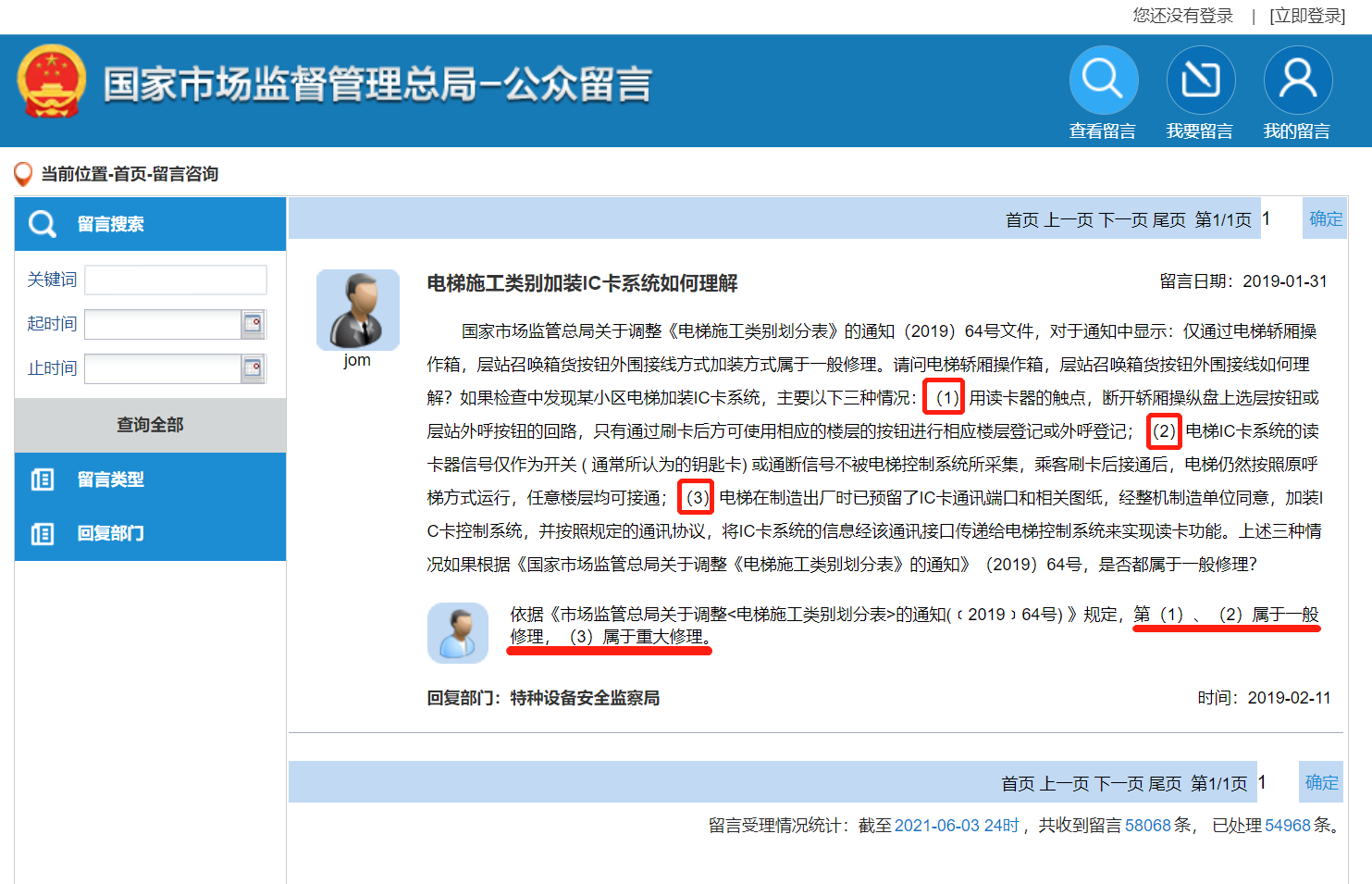2、國家市場監(jiān)督管理總局回復(fù)加裝梯控哪種是一般修理和重大修理