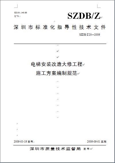 深圳《電梯安裝改造大修工程施工方案編制規范》