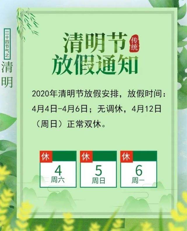 根據(jù)國(guó)家規(guī)定,我司于4月4日-4月6日放假三天,4月7日正常上班。
