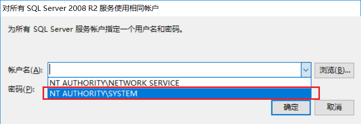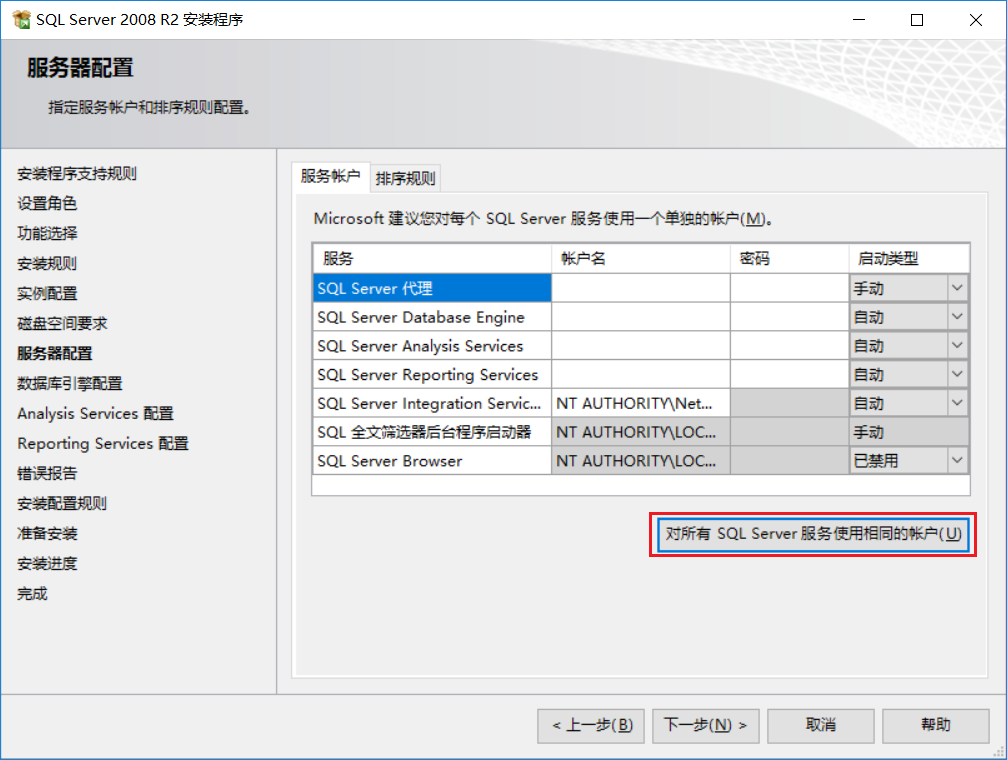 點(diǎn)擊,對(duì)所有SQL Server服務(wù)使用相同賬戶