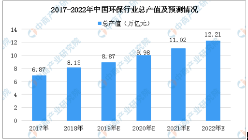 近年來,我國高度重視環境污染問題,投了大量的人力和資金成本來進行大氣污染治理,環保行業一度上升為熱門行業。據預測:到2020年,中國環保行業總產值將近10萬億元。